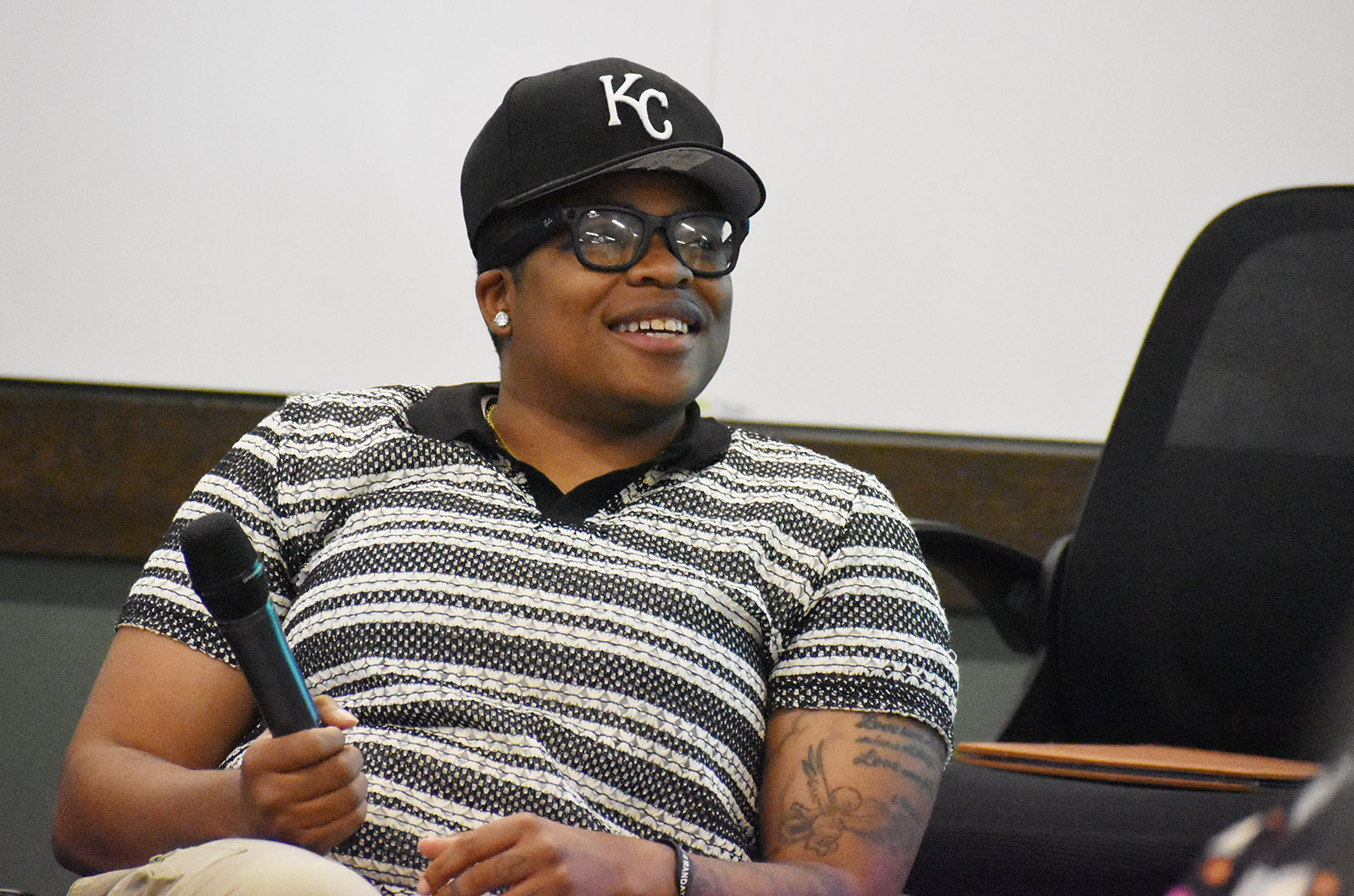 Jannae Gammage, Cyphr, smiles during a July panel conversation during an event for the Entrepreneurial Teacher Accelerator, organized by Startland in collaboration with the Ewing Marion Kauffman Foundation; photo by Taylor Wilmore, Startland News