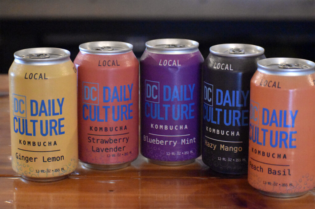 Cans of Daily Culture Kombucha at the brand’s taproom in North Kansas City; photo by Taylor Wilmore, Startland News