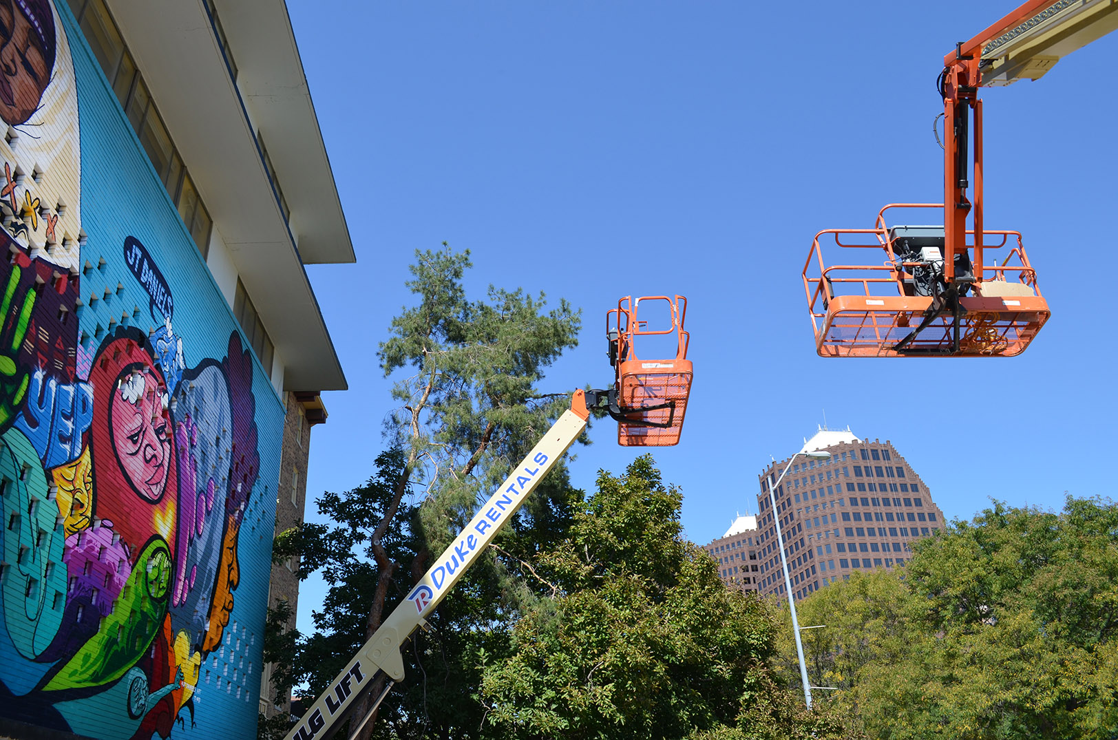 The building, which already showcases work by J.T. Daniels, locally lauded muralist, will display pieces from Kansas City-based art duos Tad and Jessica Carpenter and Isaac Tapia and Rico Alvarez, better known as “IT-RA.”