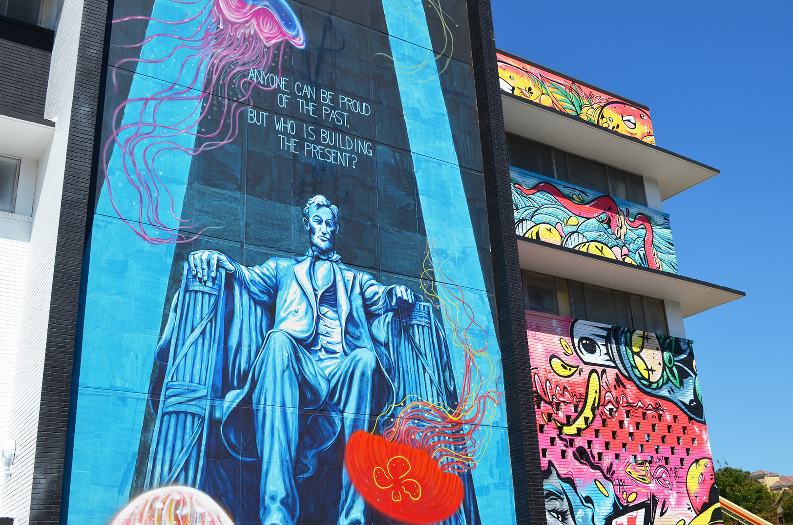 “They just wanted all of the graffiti painted over [with] flat earth tones … we wanted to add a lot more meaning to the building,” Block said, adding Lucas approved his request and connected him with Vince Sanders, founder of CBD American Shaman and SprayKC — a Kansas City-based nonprofit that works to organize, create and showcase public art metrowide.