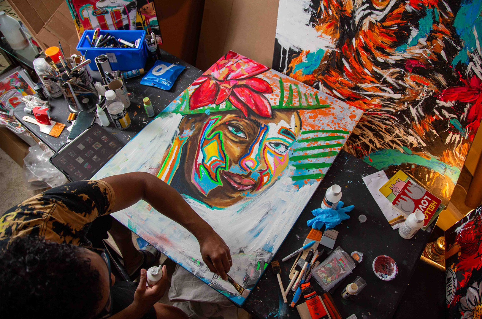 Deante Howard paints a piece using materials made possible by AltCap’s ARTcap loan for creative entrepreneurs; photo by Bobby Burch, AltCap