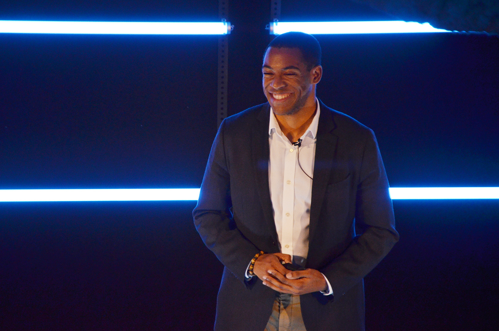 “My Mom stretched herself so thin and sometimes it was hard to put food on the table, clothes on our backs, and shoes on our feet — for a big guy like me, I ran through a lot of shoes,” the 6-foot-7 former football player-turned-CEO told a crowded room Thursday at the inaugural Demo Day for Fountain City Fintech.