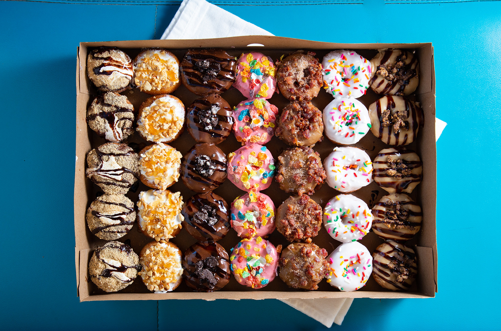 Billed as a “modern donut laboratory” where customers are encouraged to discover their unique “donut gene” by experimenting with more than 40,000 topping combinations, Donutology specializes in from-scratch mini cake donuts and seasonal donuts and features full-size classics.
