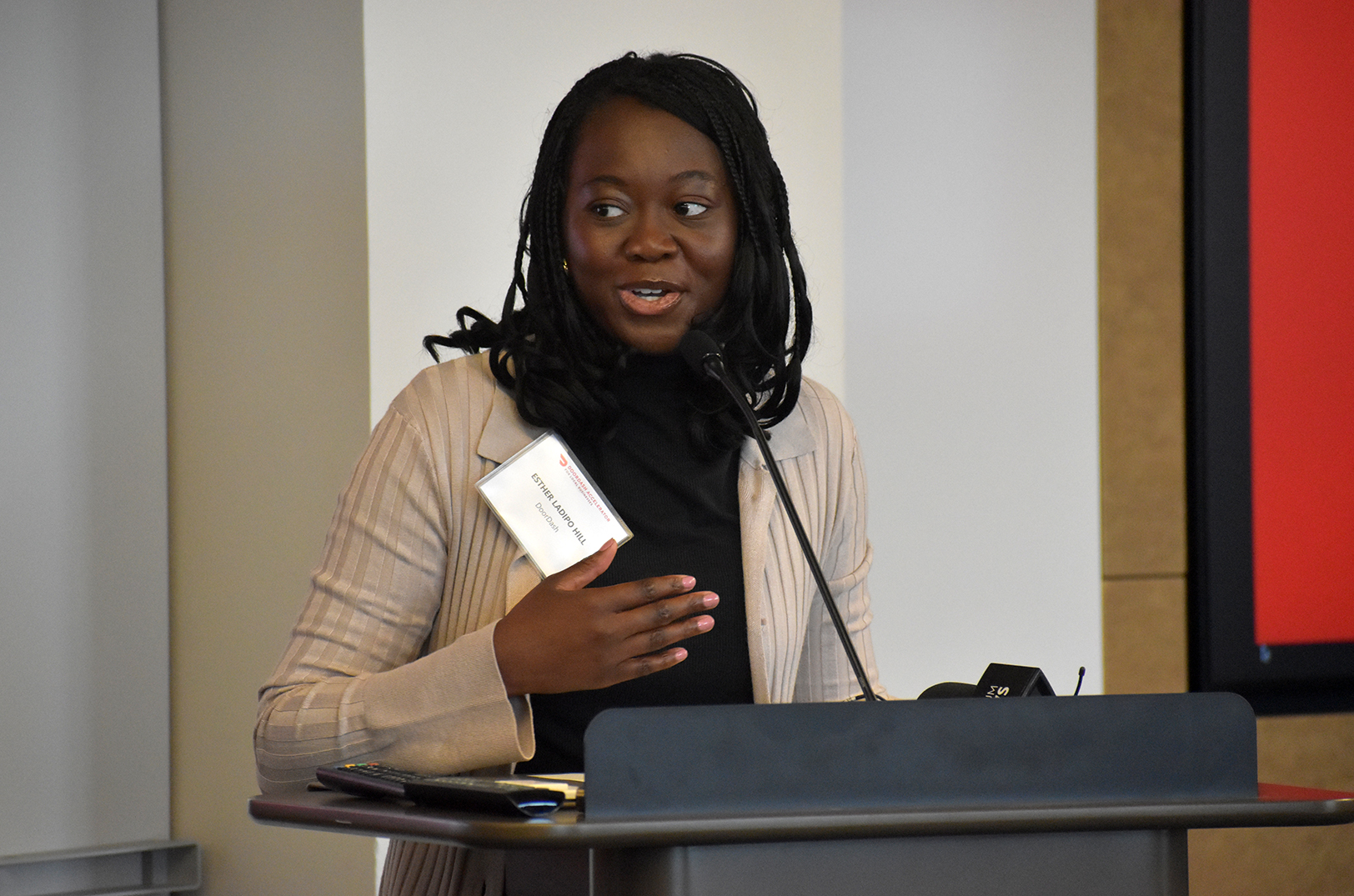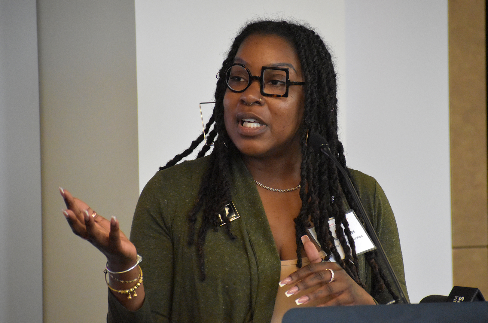 Esther Ladipo Hill, DoorDash, introduces the company’s accelerator program during a launch event at City Hall; photo by Taylor Wilmore, Startland News