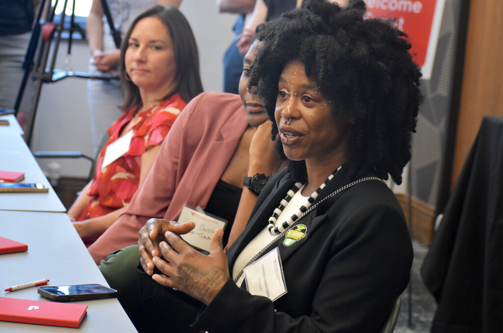 Tanyech Yarbrough, owner of Wah Gwan, discusses the impact of DoorDash’s new accelerator program for Kansas City small businesses in mid-May during a kickoff event for the program; photo by Taylor Wilmore, Startland News