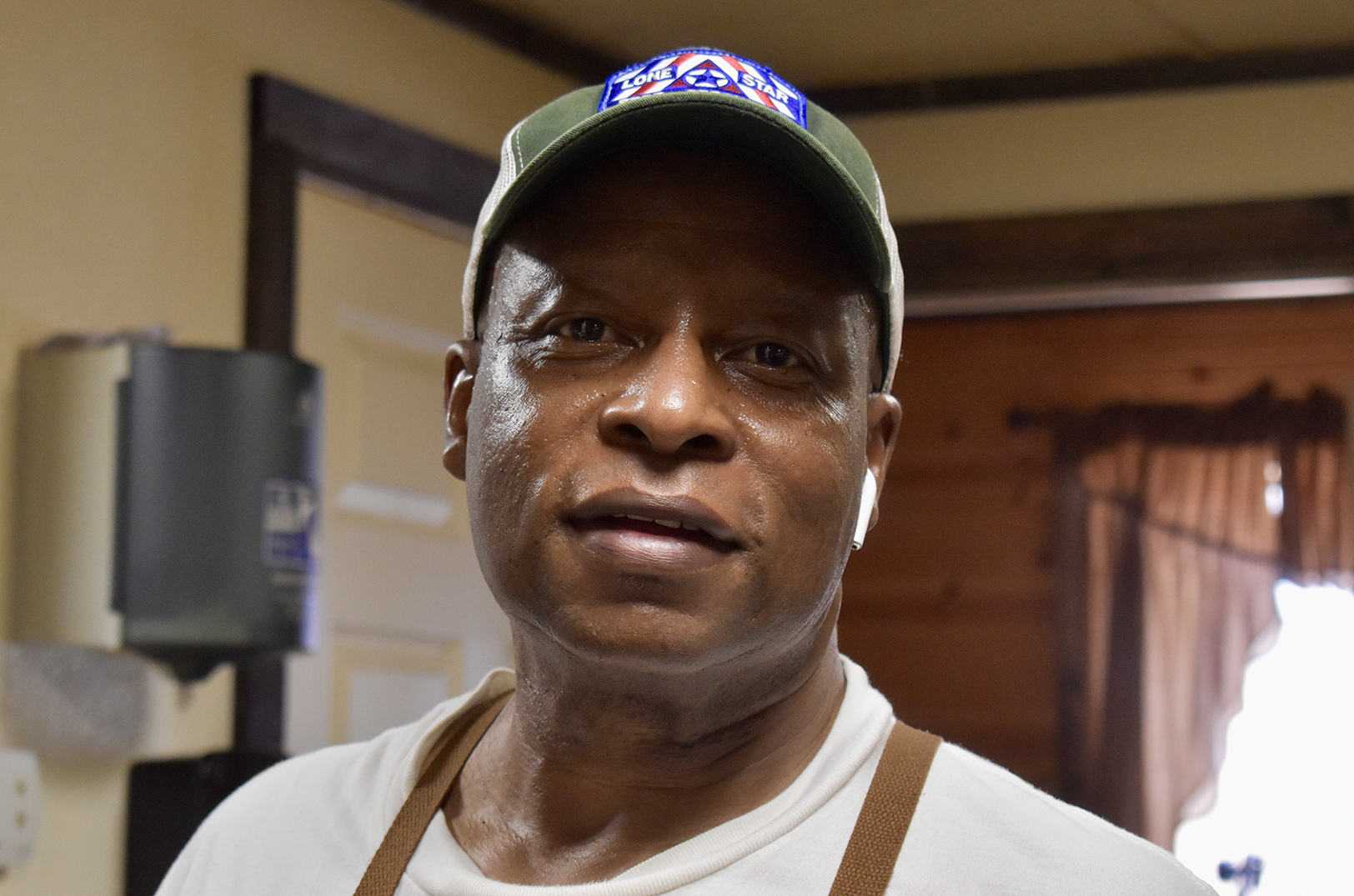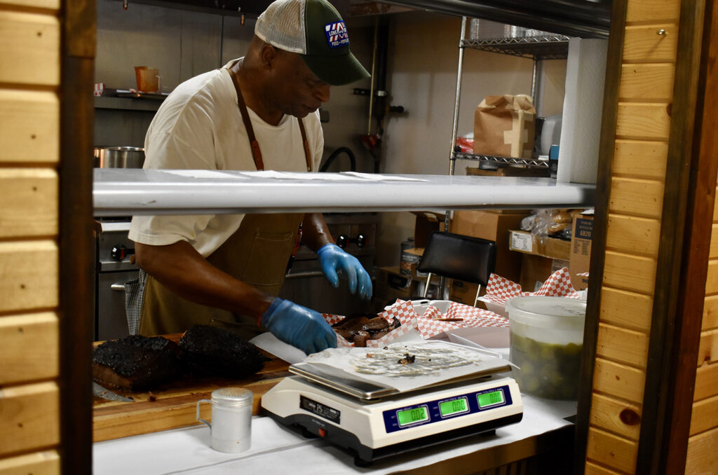 Gerald Dunn, Dunn Deal BBQ, preps barbecue before the lunch rush at his restaurant in Grandview; photo by Nikki Overfelt Chifalu, Startland News