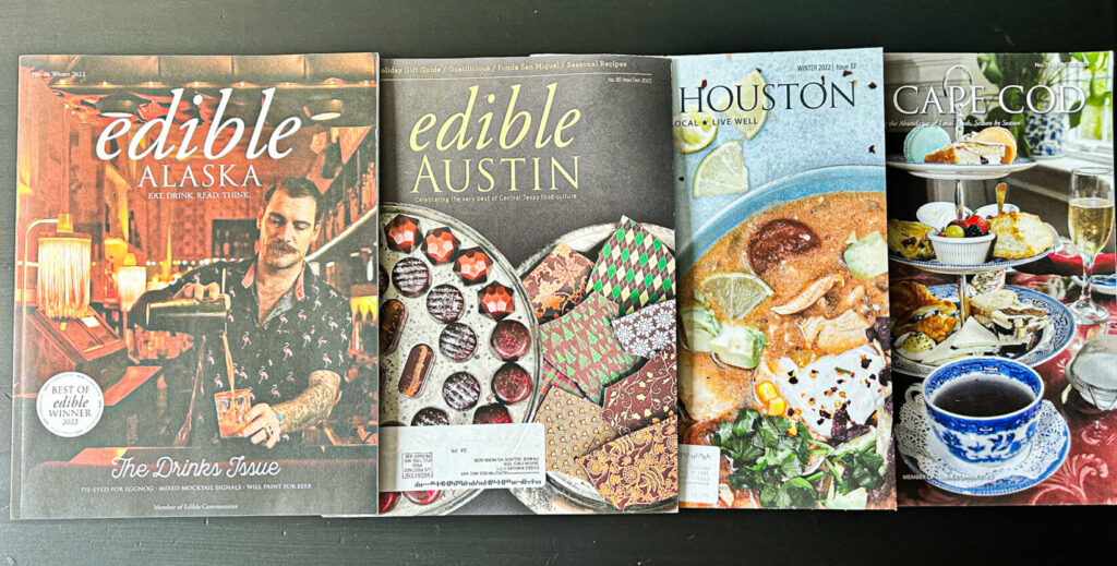 “I’m a total foodie — just personality-wise,” she shared. “We love trying things. I love cooking and was immediately attracted to the magazine. Anytime we travel, we look for an Edible. We have a whole wall of covers in our kitchen because we just love the photography and the quality of every city’s publication. It’s just incredible. We just really love (the magazine).”