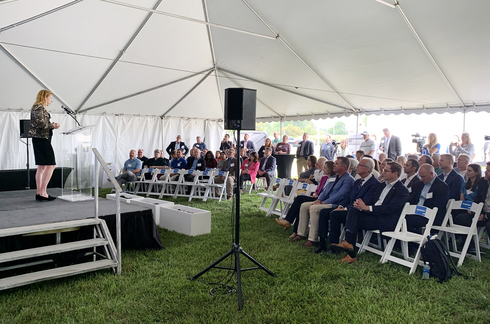 Officials speak during a ceremonial groundbreaking event at Elanco Animal Health’s Elwood, Kansas, facility; photo courtesy of Kansas City Area Development Council