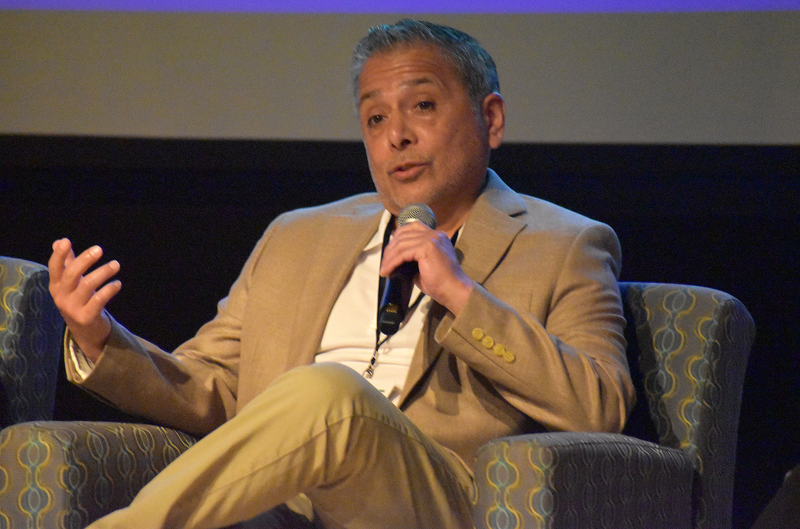 Pedro Zamora, executive director of the Hispanic Economic Development Corporation, speaks on a panel during the Enactus USA expo at UMKC; photo by Taylor Wilmore, Startland News