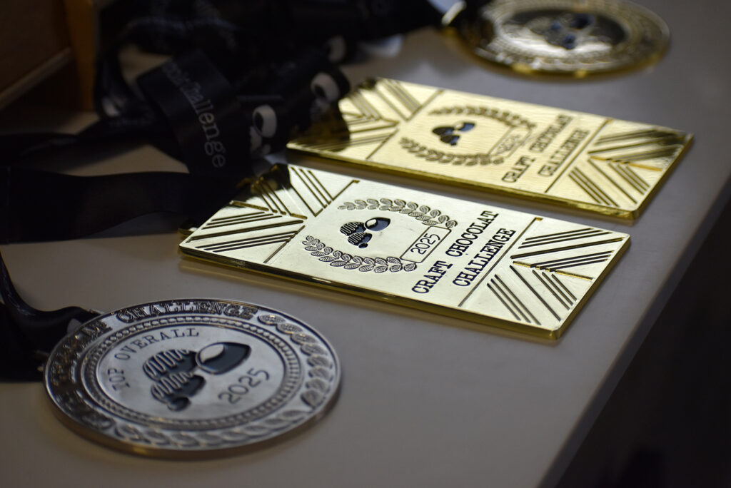 Medals won by Mike King, Encore Coffee and Chocolate, at the Craft Chocolat Challenge; photo by Taylor Wilmore, Startland News