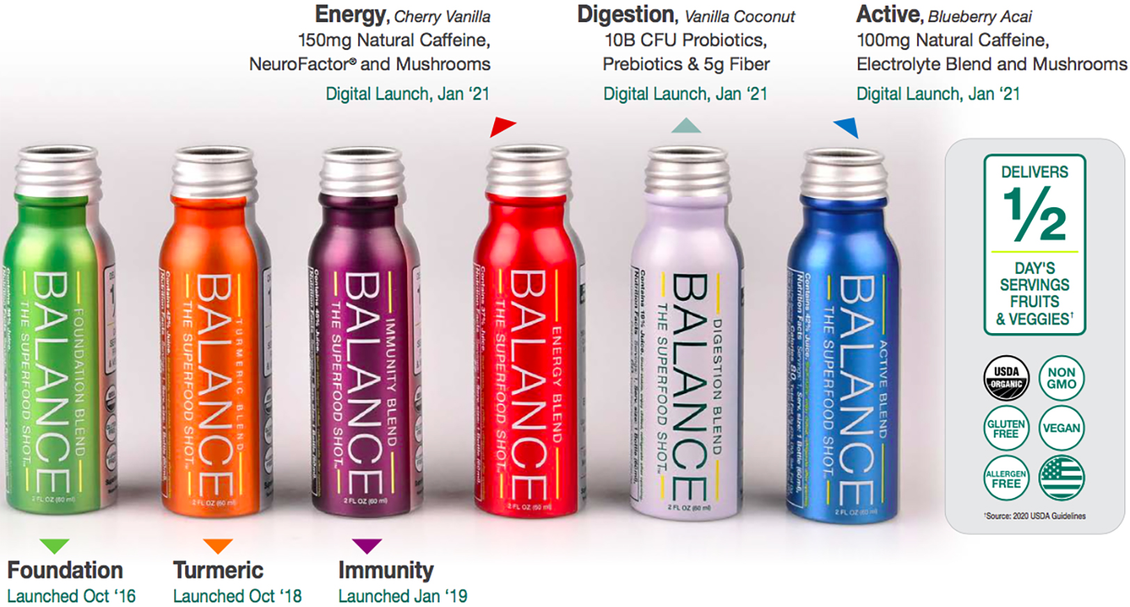 Balance The Superfood Shots also have a long shelf life — making them an easy way for someone to get their daily recommendation of fruit and vegetable consumption without needing to stock up on fresh fruits and vegetables on a weekly basis, FitzGerald added.