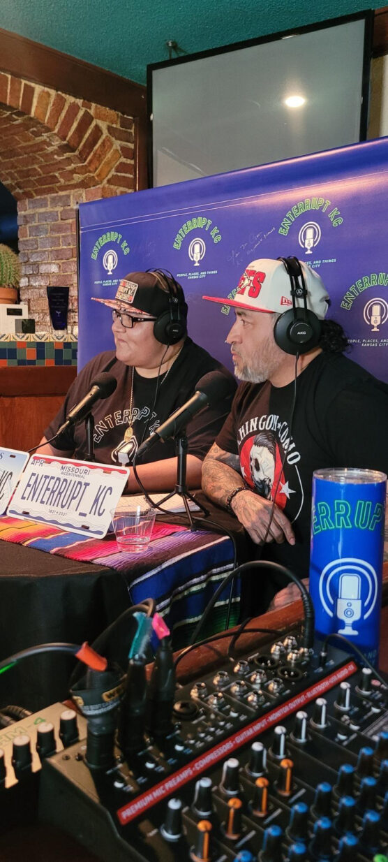 Jose “JL” Leon Jr. and Daniel “D.Rod” Rodriguez in February during a mobile podcast recording for Enterrupt KC; photo courtesy of Enterrupt KC