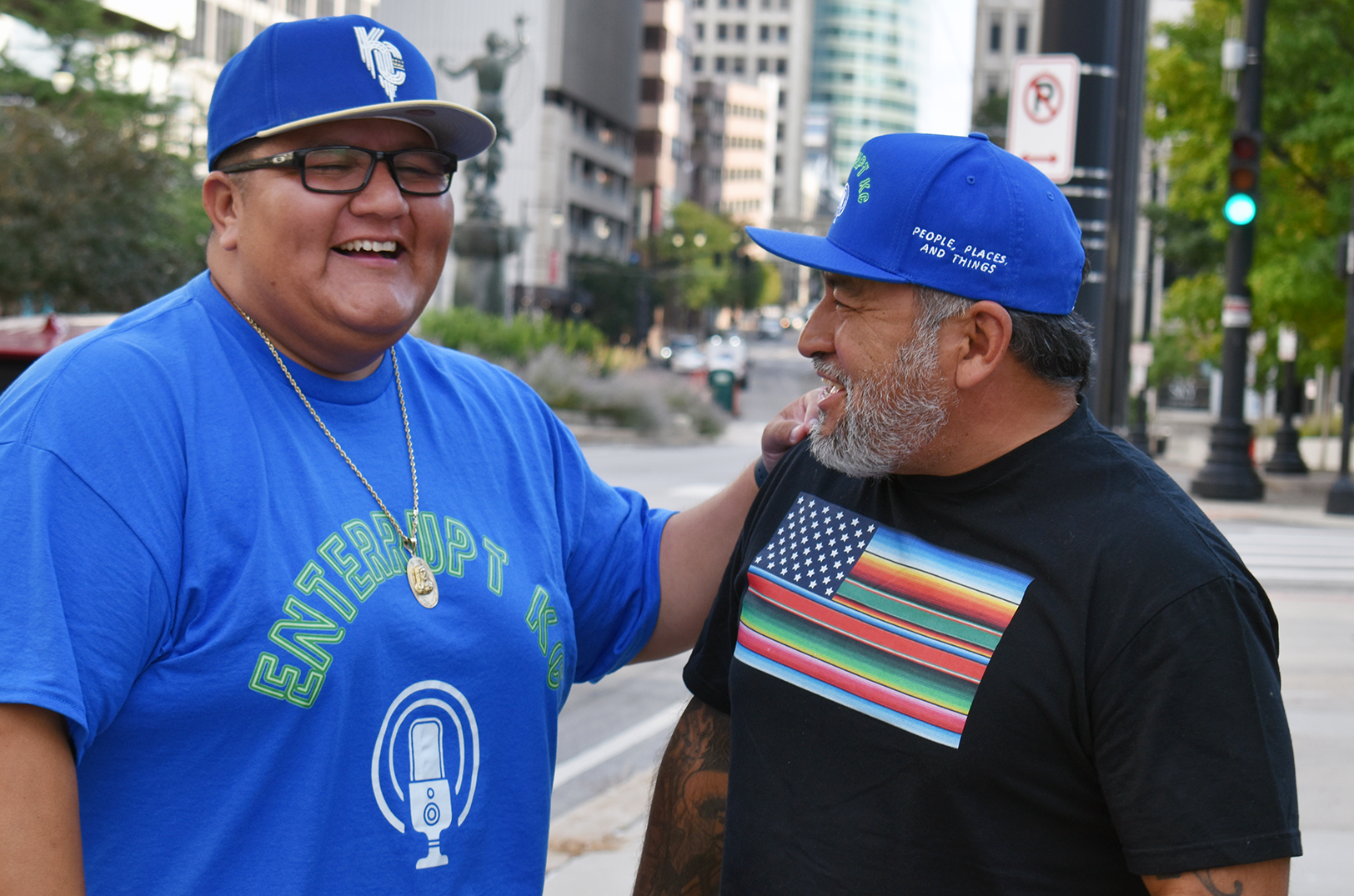Jose “JL” Leon Jr. and Daniel “D.Rod” Rodriguez in February during a mobile podcast recording for Enterrupt KC; photo courtesy of Enterrupt KC