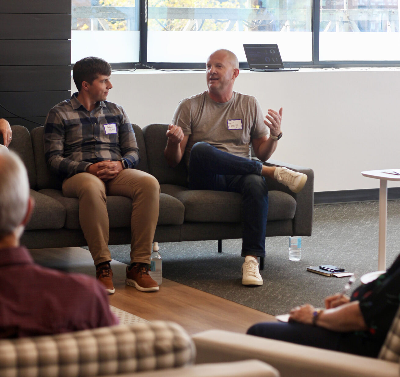 Serial tech entrepreneur Tony Caudill, right, speaks alongside moderator Gabriel Riekhof, Husch Blackwell, during a Tech Venture Studio Sound Bytes session; photo by Nikki Overfelt Chifalu, Startland News
