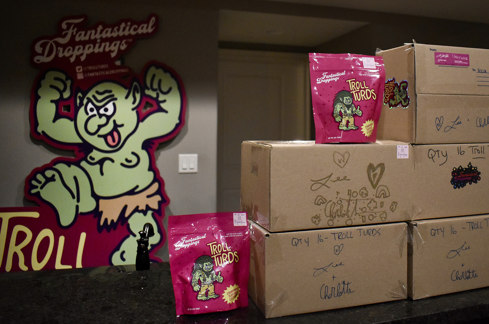 The company currently offers two products — Unicorn Ass Candy and the more-kid-friendly Troll Turds — both strawberry-flavored, soft Australian licorice, complete with poop jokes printed on the bottom, of course.