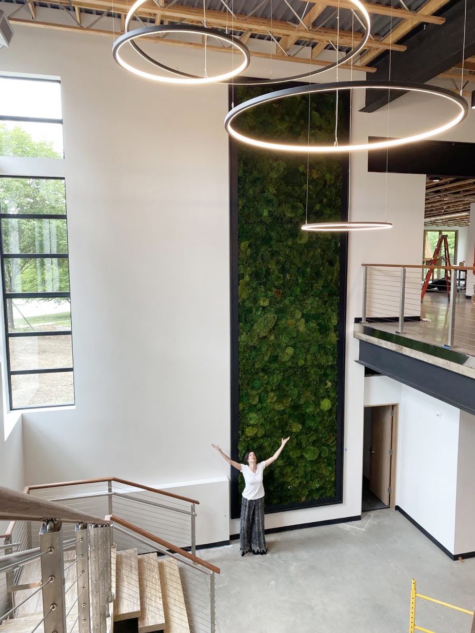 Though the trend is growing in popularity, moss used in such installations is often misunderstood, Riley said. For example, living walls require dirt and water systems, which can be quite costly, whereas moss walls don’t need any watering or misting. The two terms are usually used interchangeably even though they’re quite different, she said.