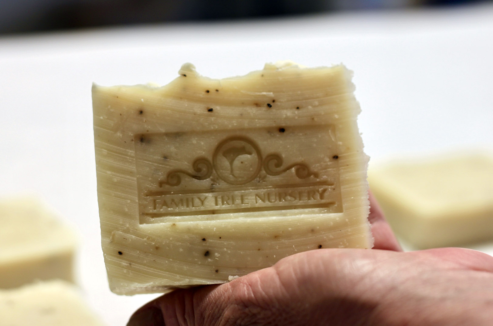 For example, all of the Family Tree Nursery locations carry the Fire Lake gardener’s bars — which is a gentle, exfoliating soap — and they are hand-stamped with the Family Tree logo.