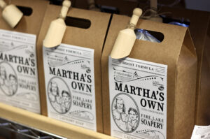 For example, all of the Family Tree Nursery locations carry the Fire Lake gardener’s bars — which is a gentle, exfoliating soap — and they are hand-stamped with the Family Tree logo.