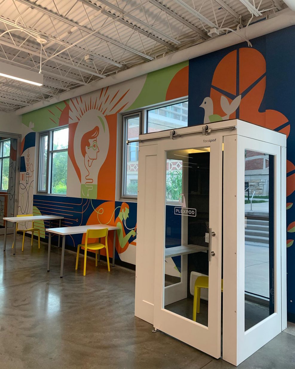 The pods are well-suited to Plexpod member-companies and outside businesses that need additional privacy within their team spaces, as well as a way to better disperse their workforce within their spaces.