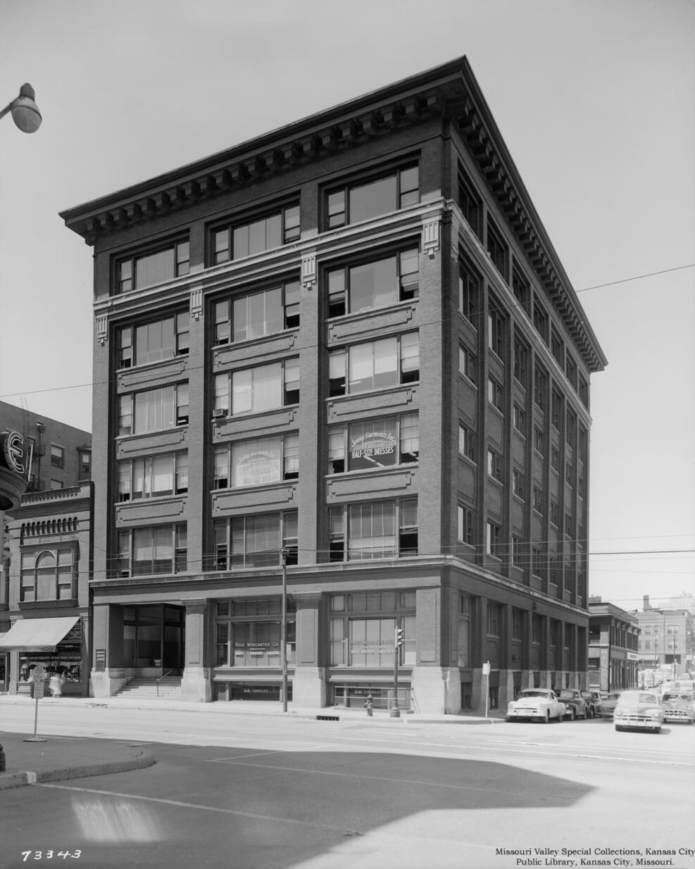 A historic Garment House as seen in a photo dated 1950 within the Robert Askren Photograph Collection at the Kansas City Public Library