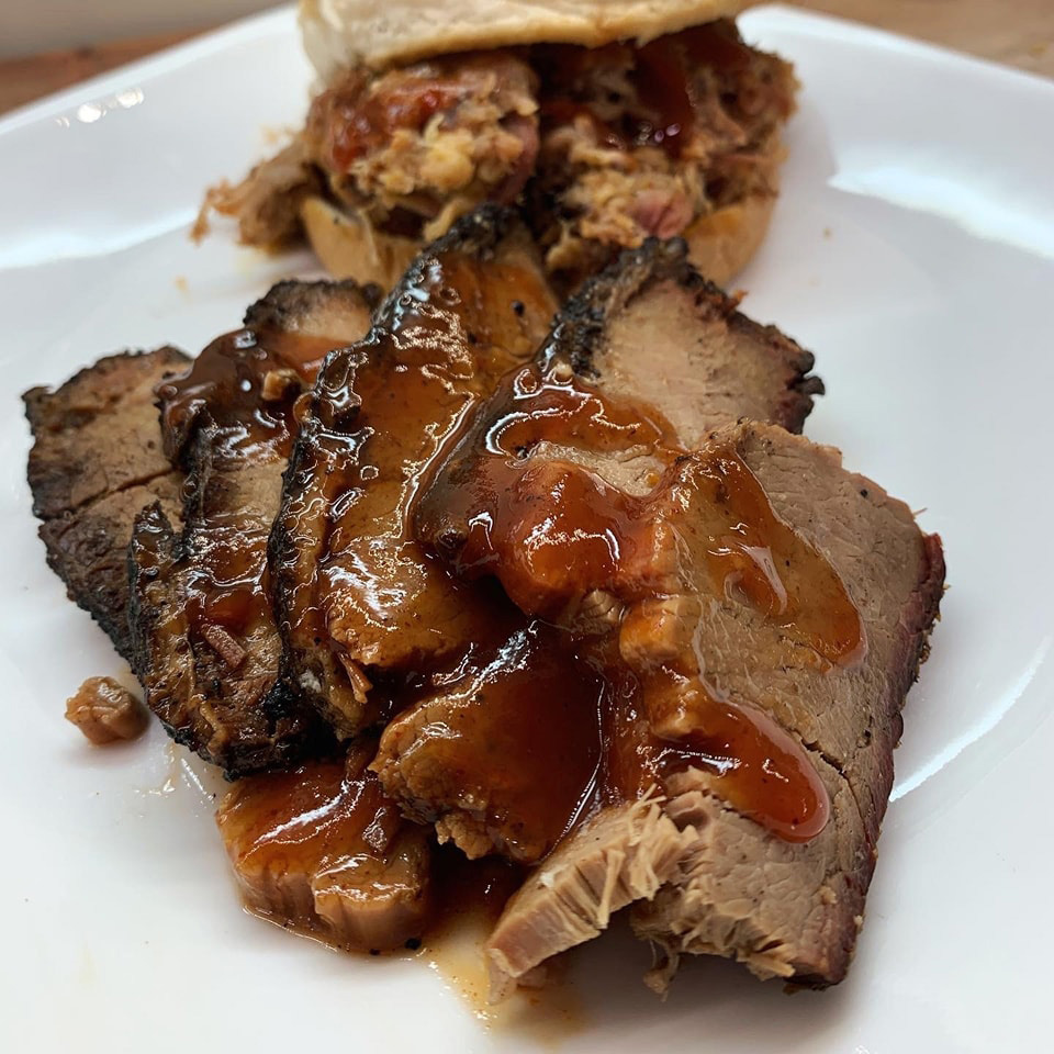Menu items can include nachos topped with slow-smoked pulled pork or chopped brisket, sliders, baby back ribs, smoked chicken wings, brats, and smoked potatoes, along with such sides as mac and cheese, coleslaw, cream-style corn, and barbecue baked beans. During the holidays, Bulgerin also offered smoked turkey.