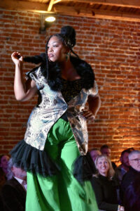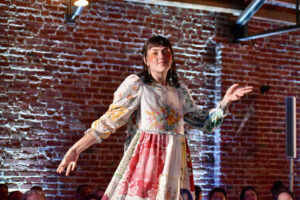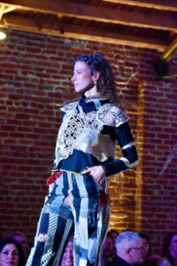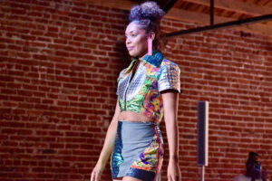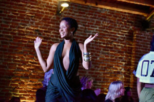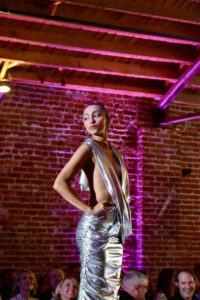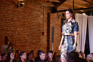 A model wearing Guevel takes the runway during the Social Couture event; photo by Nikki Overfelt Chifalu, Startland News