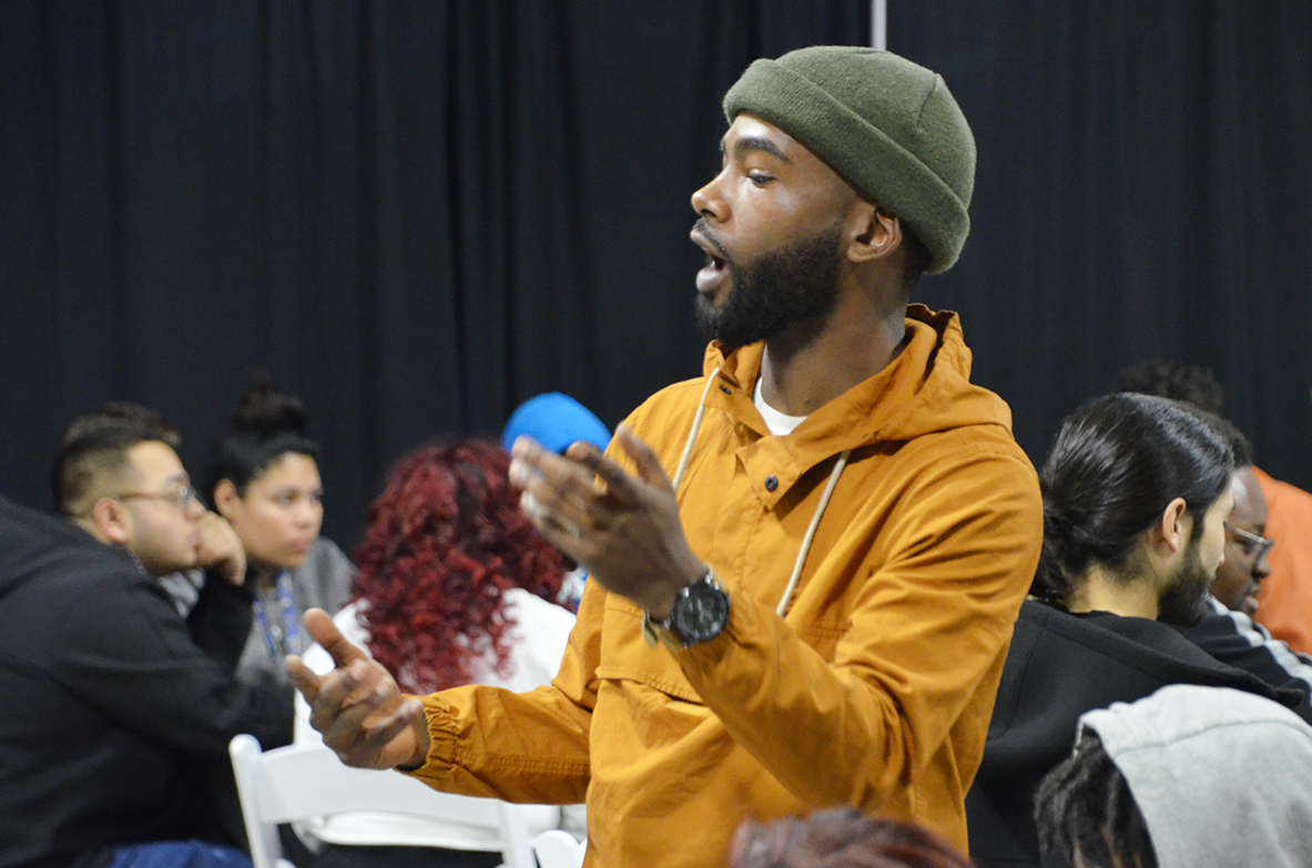 Before students broke into groups Tuesday to brainstorm solutions, they heard Wesley Hamilton’s story about being paralyzed after getting shot at age 24 by a total stranger. The Kansas City native, who founded the Disabled But Not Really Foundation, advocated for gun violence awareness, as well as personal responsibility.