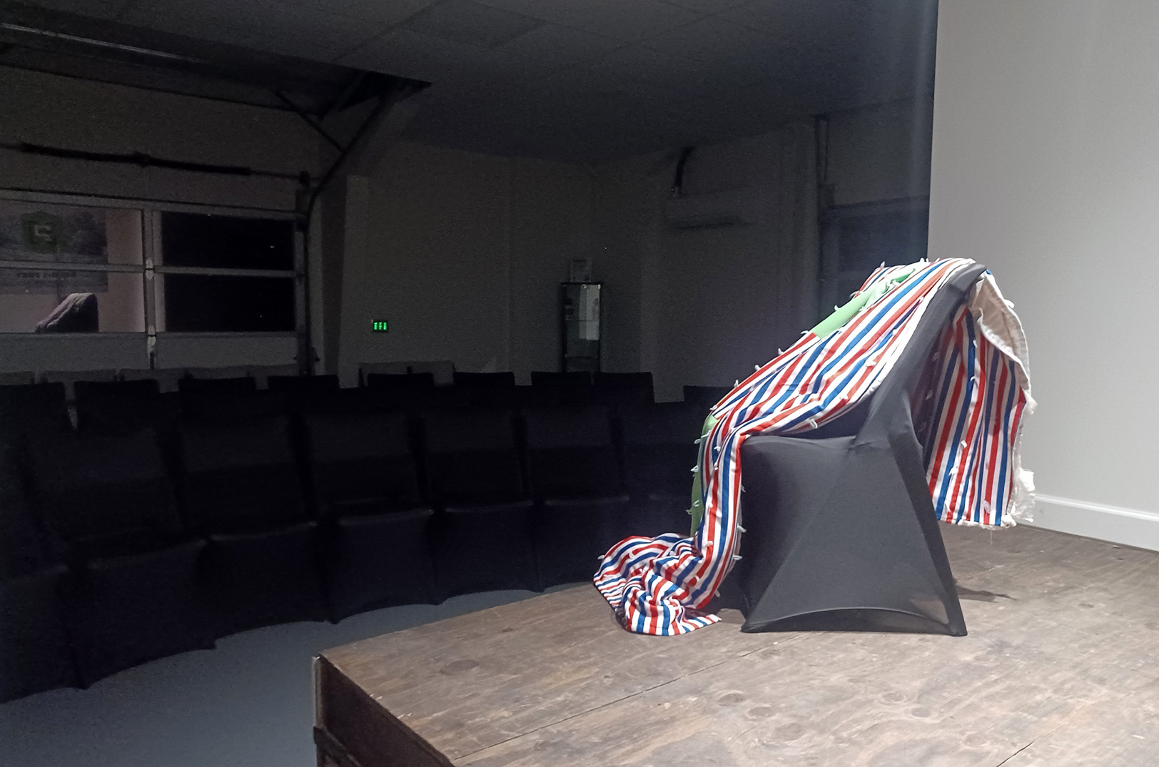 Stage setup for “My Brother is My Security Blanket” at Harris Park’s new theater; photo courtesy of Chris Harris