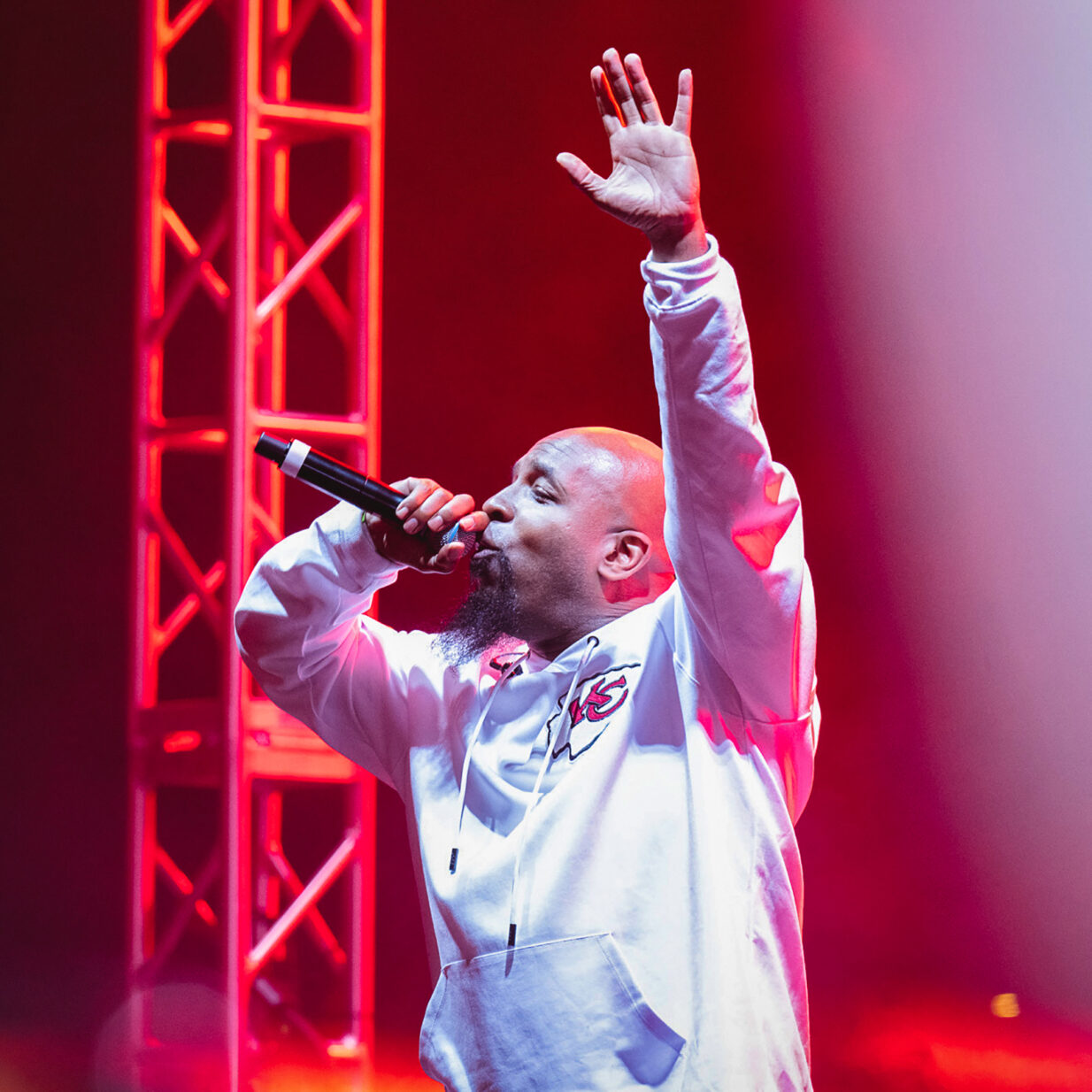 Rapper and Kansas City native Tech N9ne performs during a 2023 post-Super Bowl concert featuring members of the Chiefs; photo courtesy of the Kansas City Chiefs