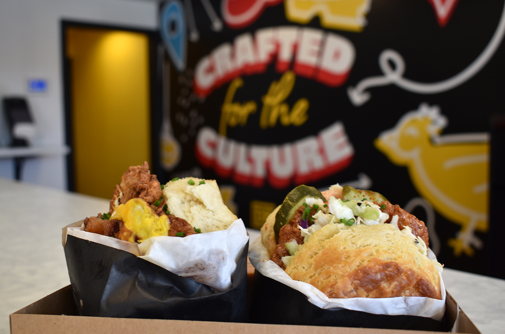 He recently introduced the Howlin’ Fowls, a hot chicken late night menu, and is perfecting a frozen biscuit so he can offer it to area coffee shops and bakeries.