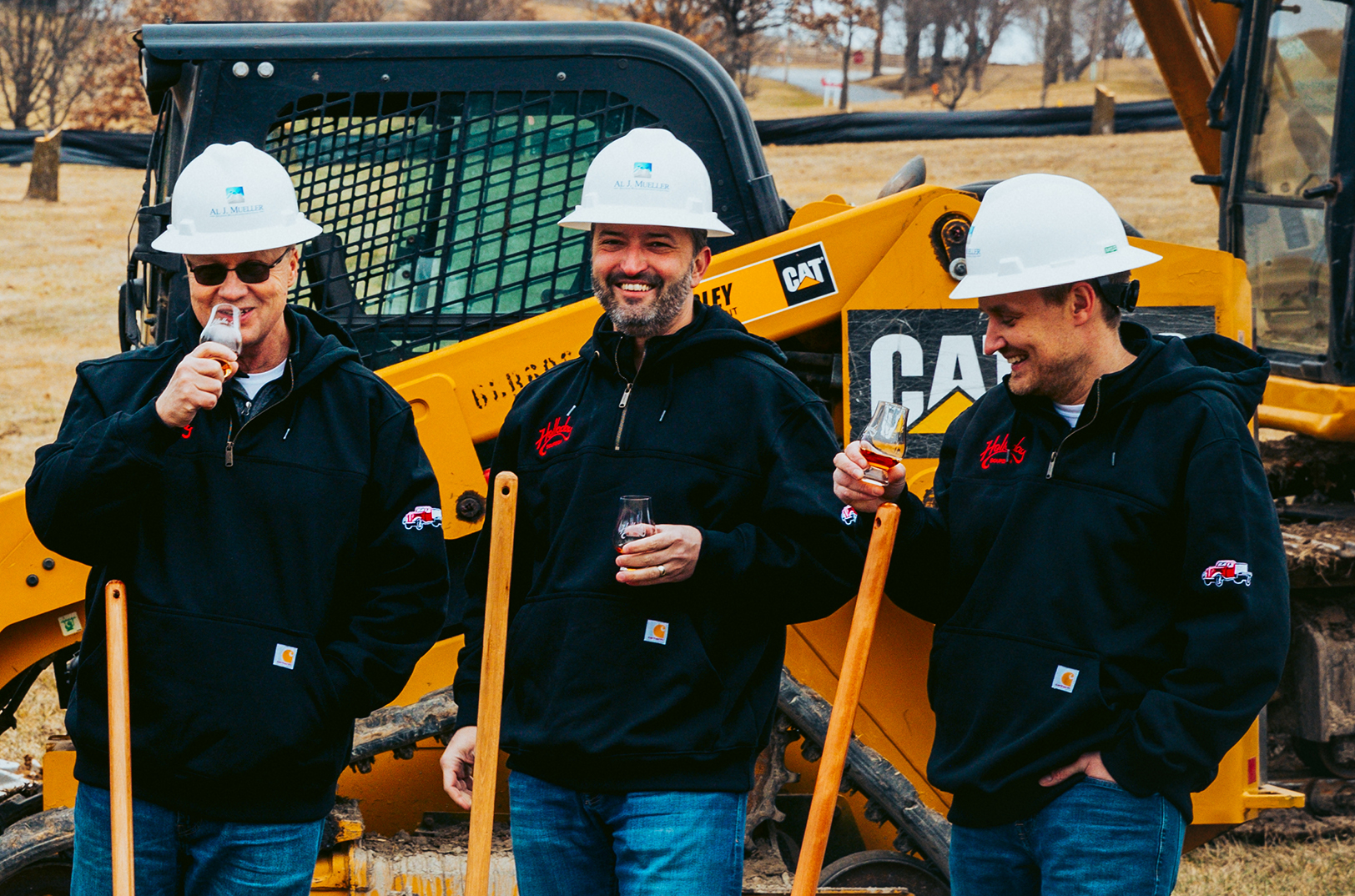 Holladay Distillery officials join representatives of St. Joseph-based Al J. Mueller for a groundbreaking event earlier this year at the site of Rickhouse D at Holladay Distillery; courtesy photo