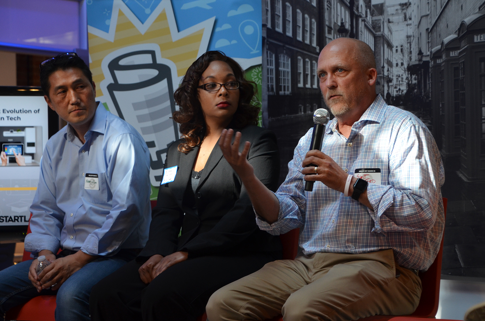 Henry Kim, LG Electronics; Brittany Williams, WISE Power; and Scott Ford, Pepper; Innovation Exchange