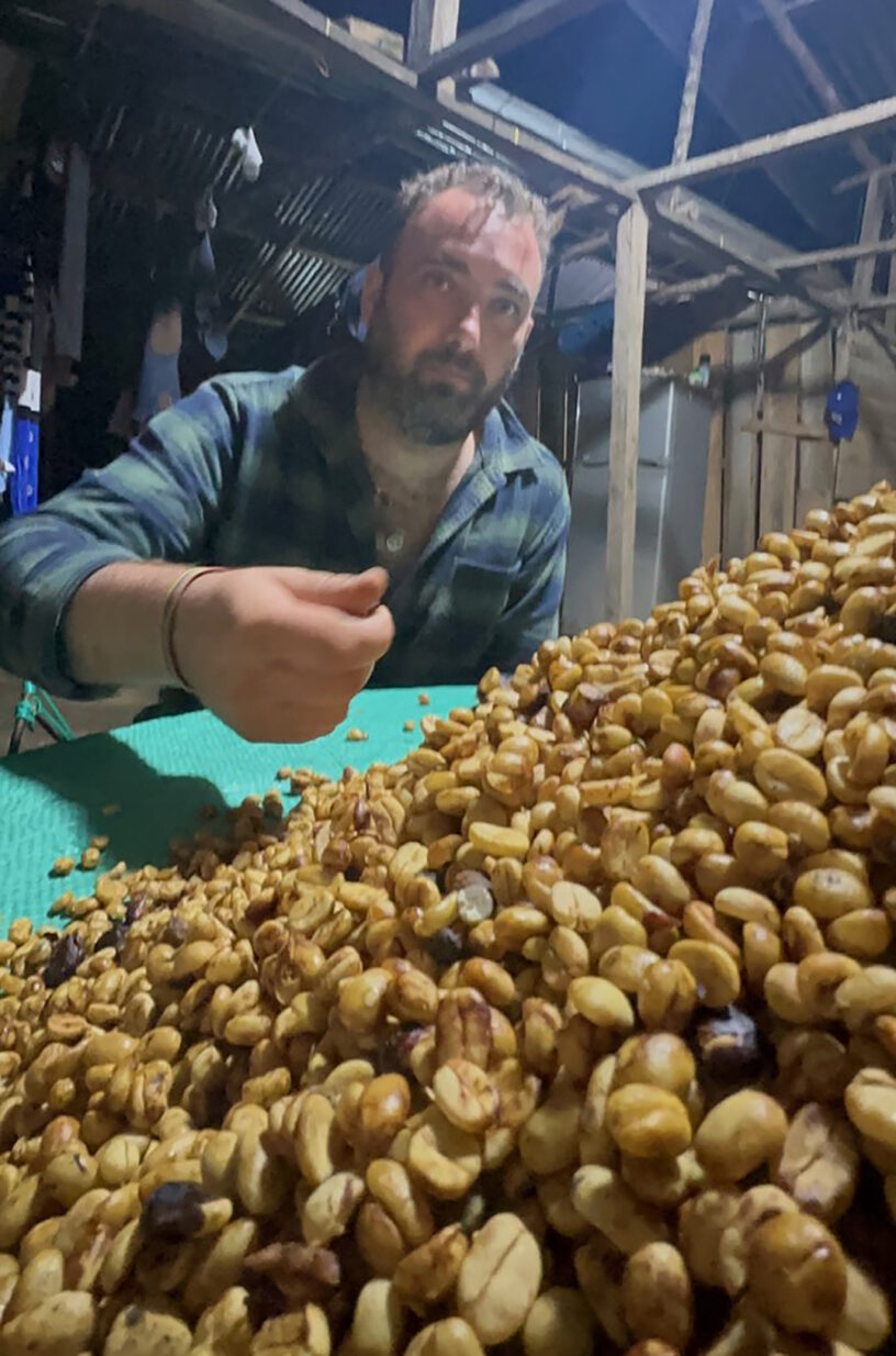 Brett Janssen with beans from his coffee farm in the Andes Mountains of Huila, in southwestern Colombia; courtesy photo