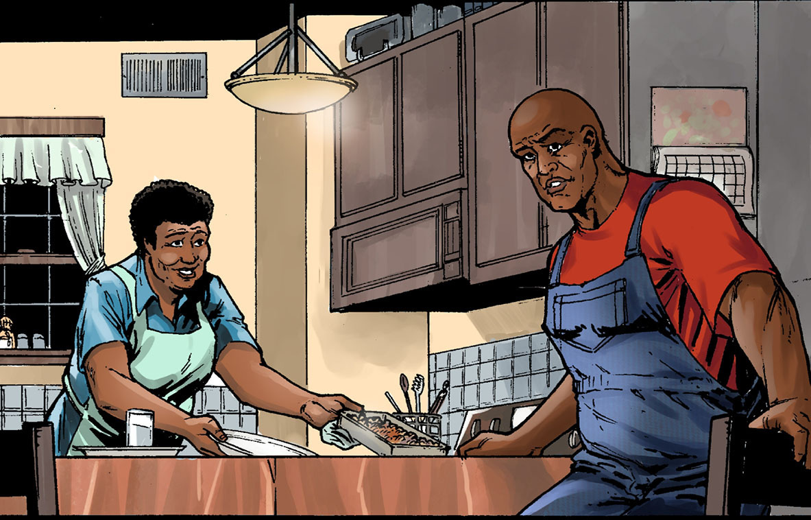 Stories like “The Scarlet Knight” also heavily reflect Herron’s experience growing up in the city’s urban core. Not only does the comic’s name harken back to his alma mater Southeast High School’s mascot, the family dynamic depicted in the story hits close to home, he said.
