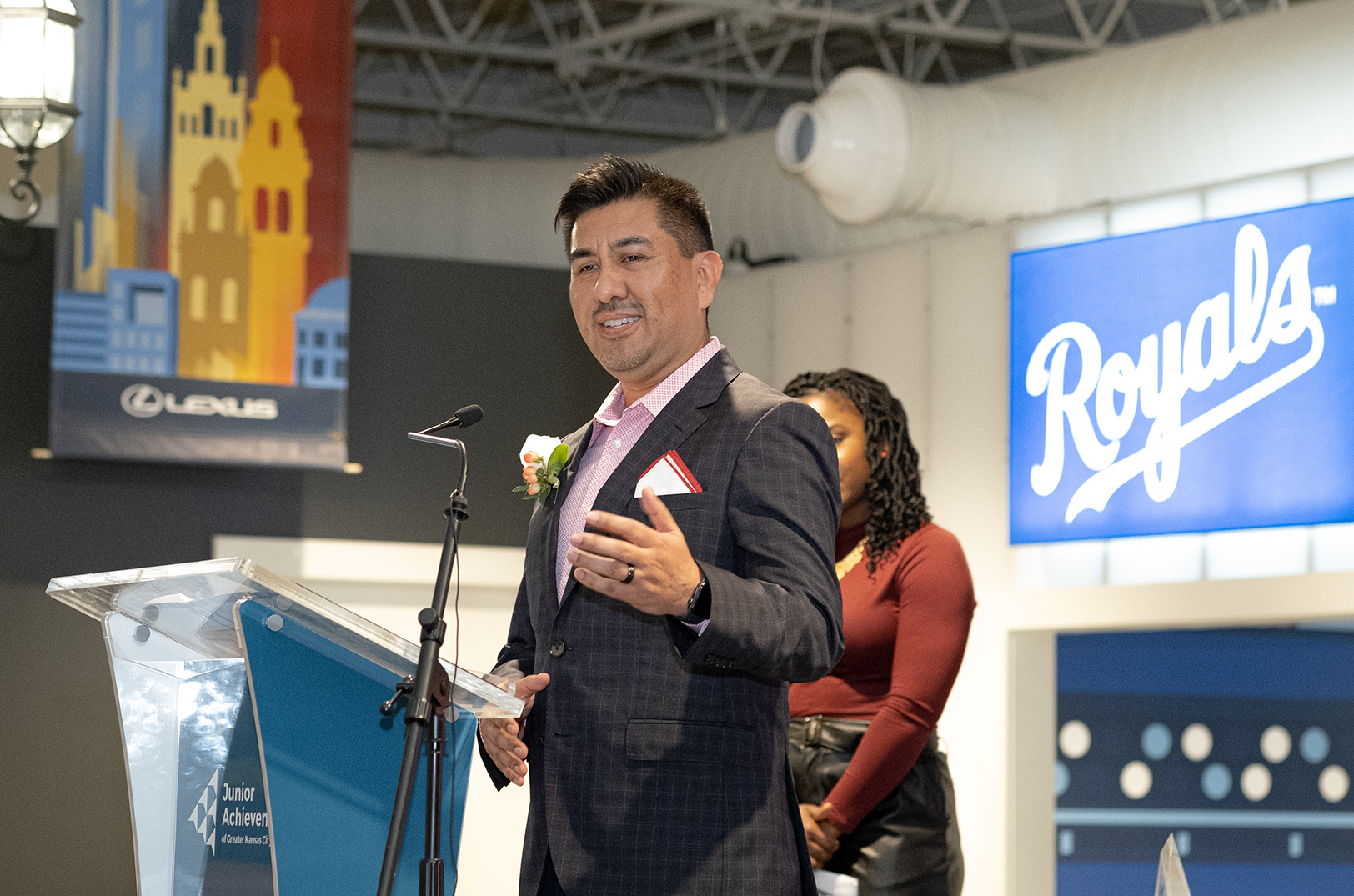 Carlos Antequera, Novel Capital, at the 2022 Junior Achievement of Greater Kansas City Business Hall of Fame ceremony; photo courtesy of Chancellor’s Promise
