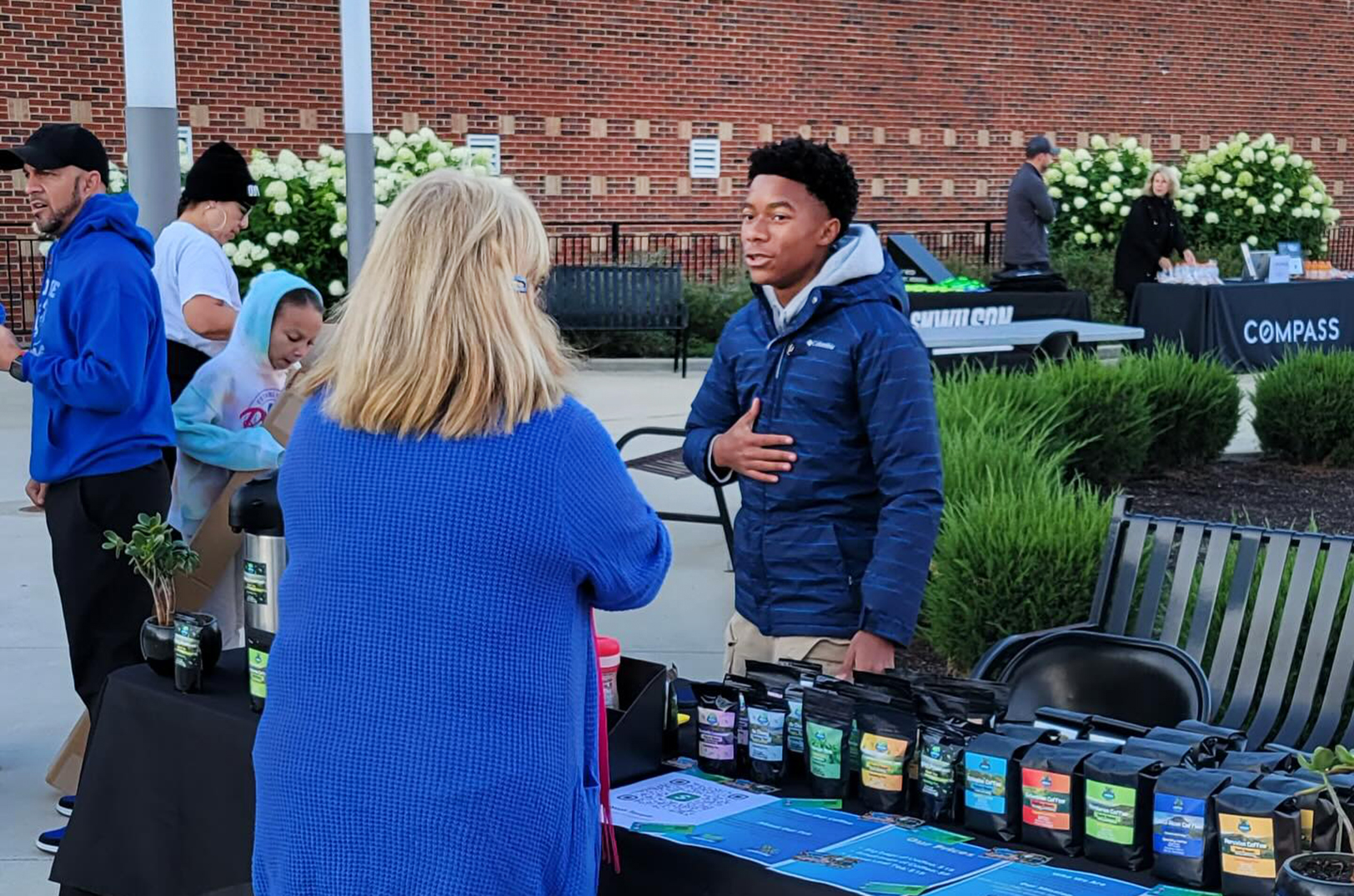 Noah Temple, a senior at Ladue Horton Watkins High School in St. Louis, sells blends from his Junior Java Coffee brand during a popup event; photo courtesy of Junior Java Coffee