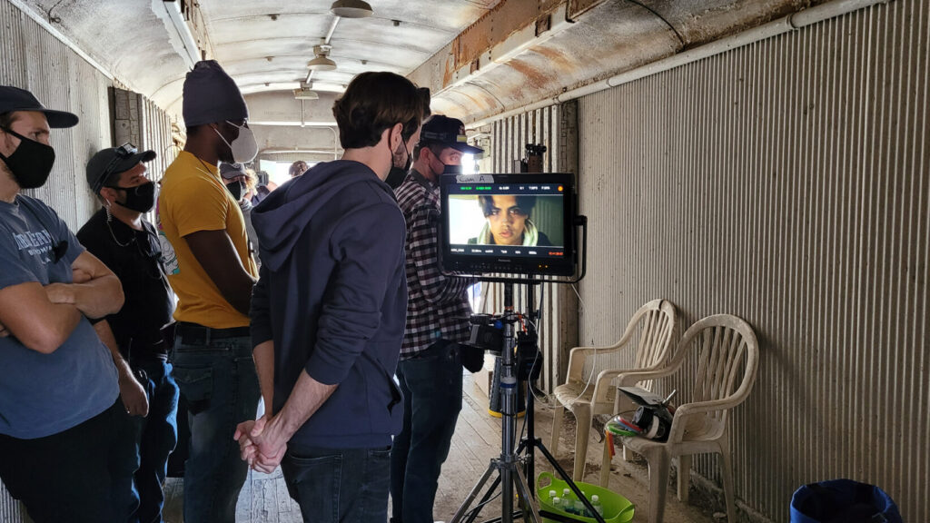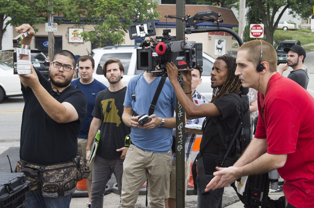 Behind-the-scenes photo from “All Creatures Here Below,” the independent feature film that was the first to use a local Kansas City film incentive in 2016 after state incentives lapsed; “All Creatures Here Below” credits: written by and starring: David Dastmalchian; directed by: Collin Schiffli; director of photography: Bongani; producers: Amy Greene and Chris Stinson; filmed in Kansas City, Missouri, and Kansas; photo courtesy of the KC Film Office