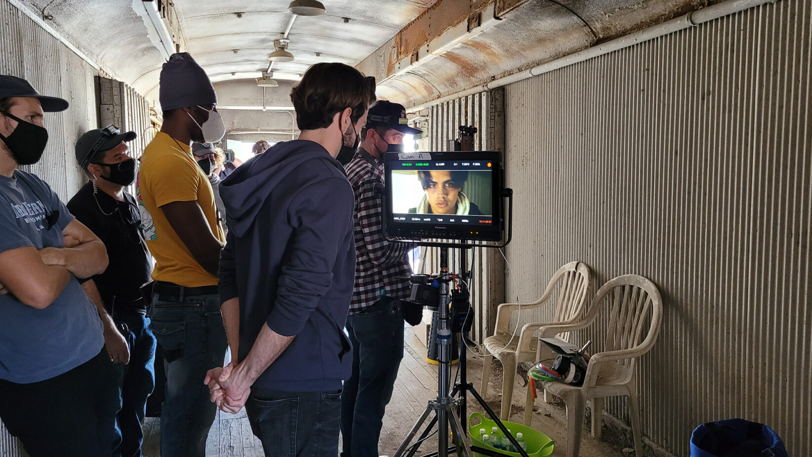 Behind-the-scenes photo from “All Creatures Here Below,” the independent feature film that was the first to use a local Kansas City film incentive in 2016 after state incentives lapsed; “All Creatures Here Below” credits: written by and starring: David Dastmalchian; directed by: Collin Schiffli; director of photography: Bongani; producers: Amy Greene and Chris Stinson; filmed in Kansas City, Missouri, and Kansas; photo courtesy of the KC Film Office