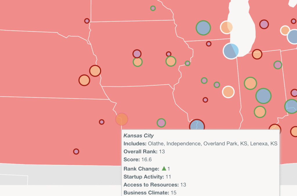 “Candidly, I felt Kansas City was more vibrant than the rankings showed,” Gutwein said. “But this could also be because I am an early stage digital technology investor, and Kansas City may be (and to me anecdotally is) stronger in this category than some other cities ranked above it — probably because these cities have a more mature ecosystem and/or have deep strengths in some areas we (as an investor) don’t look at, like life sciences, but still would register on these rankings.”