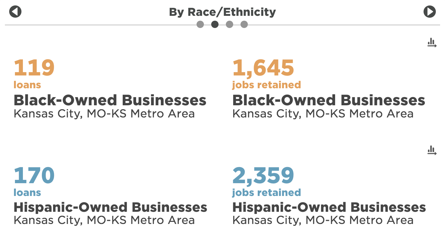 A report produced in June by mySidewalk on behalf of the Kauffman Foundation emphasized the COVID-19 relief gap, specifically examining Paycheck Protection Program recipients. Of the 32,705 loans given to Kansas City businesses, only 119 were awarded to Black-owned businesses and 170 to Hispanic-owned businesses, according to the mySidewalk data.