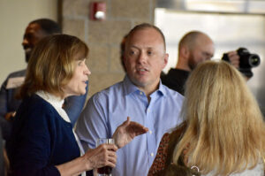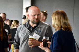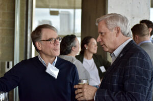 Chad Grittman, director of strategic partnerships for BioNexus KC, left, discusses the fundraising effort behind the region’s application for Tech Hubs Phase 2 funding from the federal government; photo by Nikki Overfelt Chifalu, Startland News