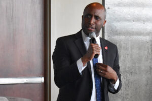 KCMO Mayor Quinton Lucas congratulates regional leaders for the KC BioHub consortium’s application for Tech Hubs Phase 2 funding from the federal government; photo by Nikki Overfelt Chifalu, Startland News