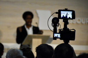 Monique Picou, global vice president of cloud supply chain and operations for Google, announces the tech giant’s plans for a billion-dollar data center in Kansas City; photo by Taylor Wilmore, Startland News