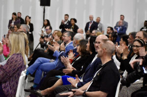 Ora Reynolds, president and CEO of Hunt Midwest, joins Google in celebrating the announcement of Google’s billion-dollar data center in Kansas City; photo by Taylor Wilmore, Startland News