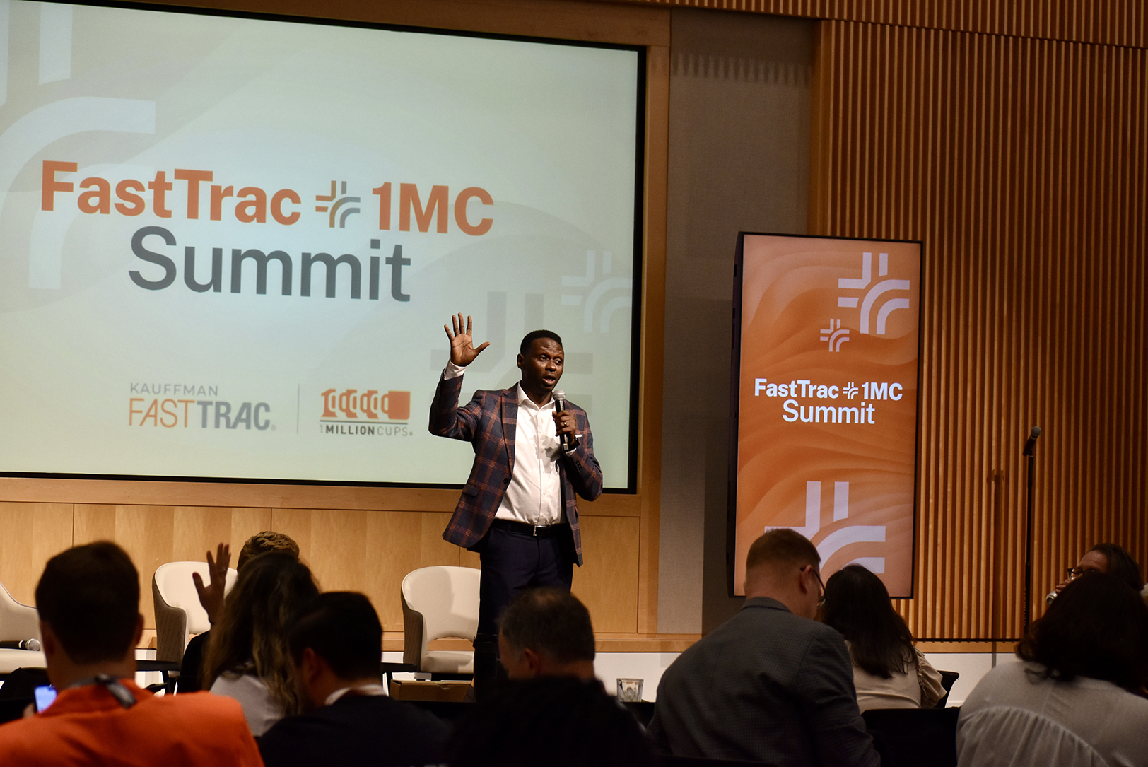 Olatunji Ajani, executive director for 1 Million Cups and FastTrac at the Ewing Marion Kauffman Foundation, speaks during the first-ever Kauffman FastTrac and 1 Million Cups Summit; photo by Nikki Overfelt Chifalu, Startland News