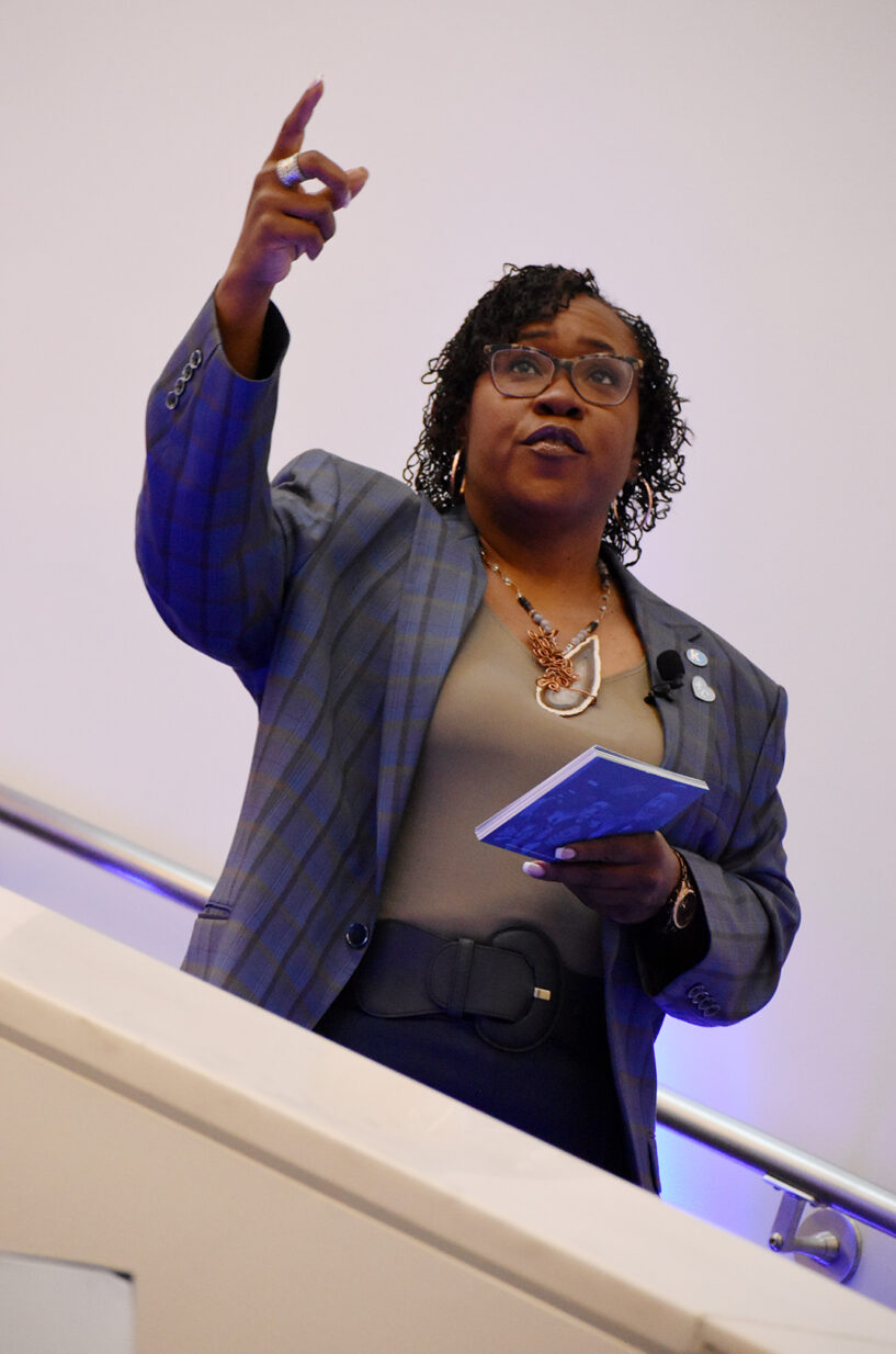 Dr. DeAngela Burns-Wallace speaks during the Sept. 19 Spark event at the Ewing Marion Kauffman Foundation; photo by Tommy Felts, Startland News