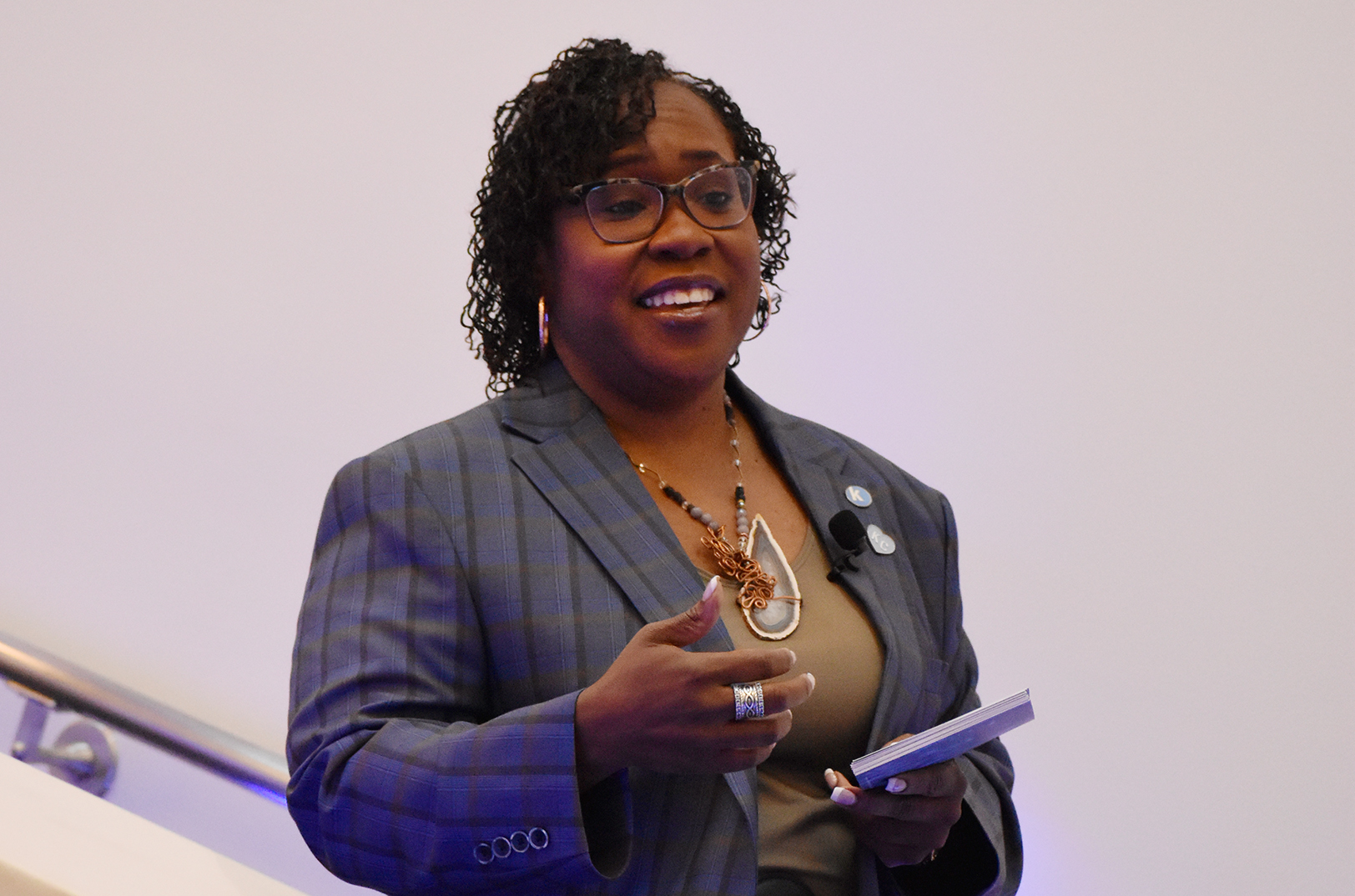 Dr. DeAngela Burns-Wallace speaks during the Sept. 19 Spark event at the Ewing Marion Kauffman Foundation; photo by Tommy Felts, Startland News