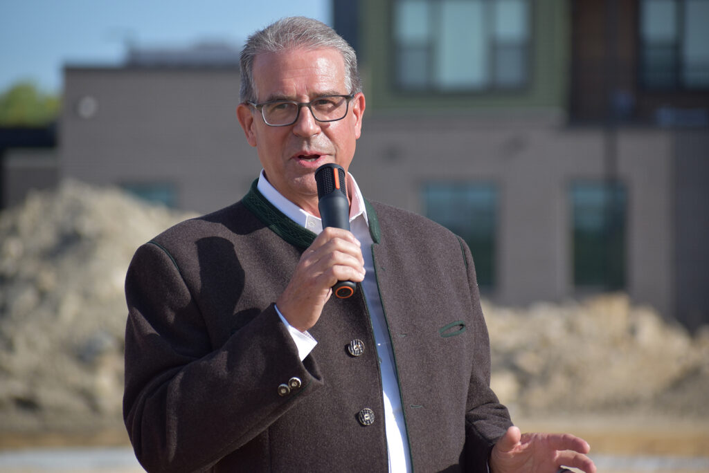 Steve Holle, founder of KC Bier Co., describes his vision for the new Bavarian-style biergarten in Lenexa; photo by Taylor Wilmore, Startland News