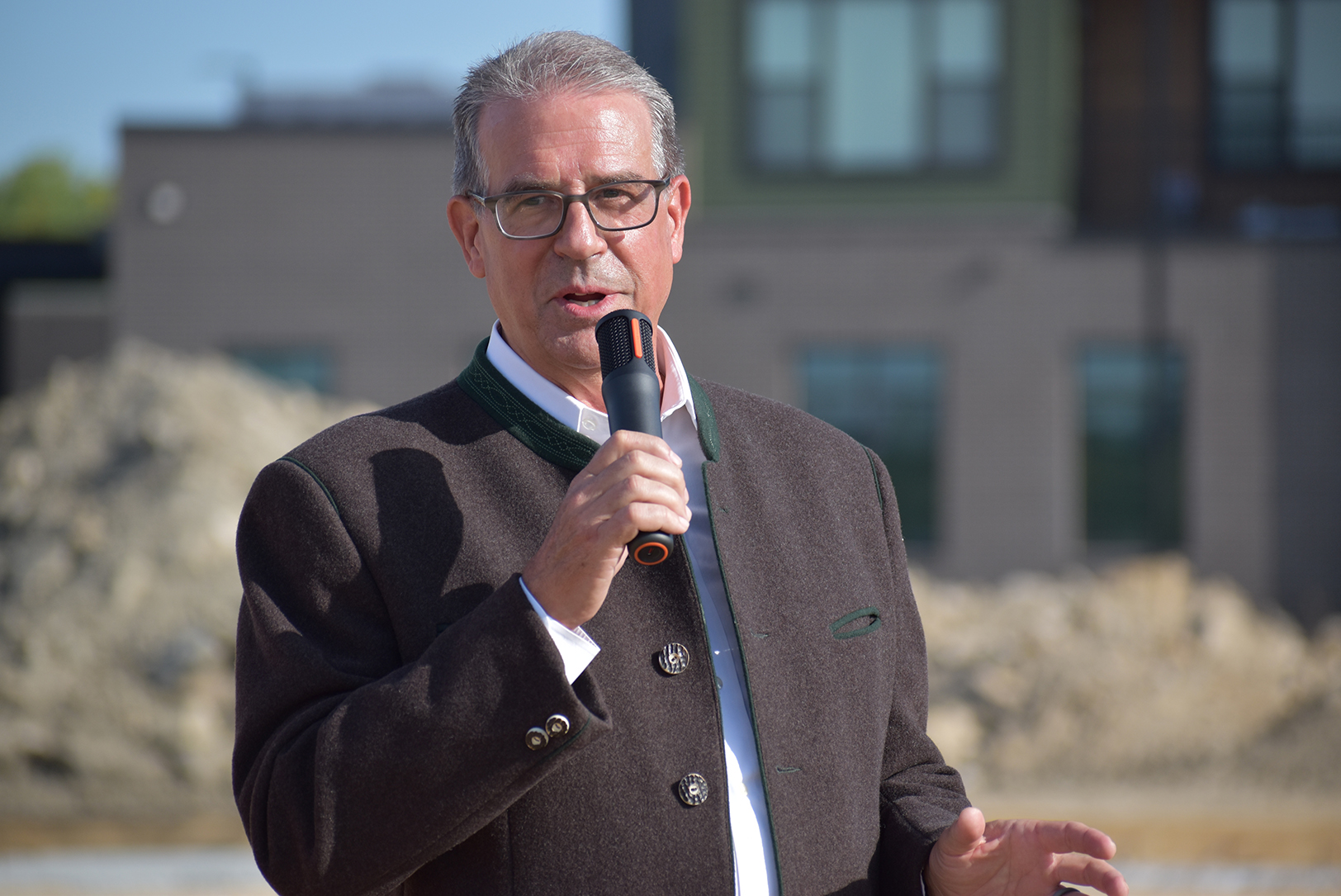 Camille Christie, West Star Development, speaks during KC Bier Co.’s groundbreaking ceremony for the brewery’s expansion at the new Vista Village district in Lenexa; photo by Taylor Wilmore, Startland News