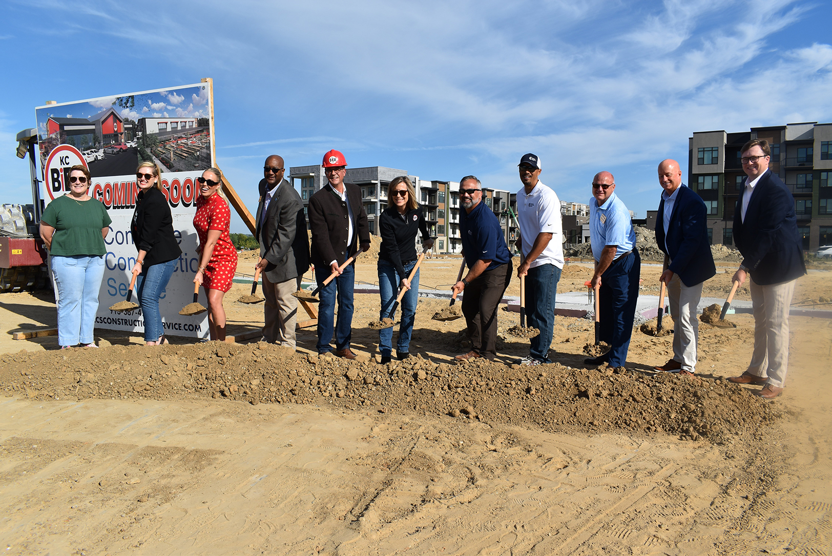 Business, civic and economic development leaders turn dirt at a KC Bier Co. groundbreaking ceremony for the brewery’s expansion at at West Star Development’s Vista Village district in Lenexa; photo by Taylor Wilmore, Startland News